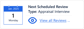 Align formal performance reviews to any cadence (30-60-90, quarterly, annual, etc.) to document manager conversations and feedback, set goals, add skill & competencies, and foster employee development. Myriad review types can be enabled, including 360 feedback, continuous engagement, Performance Improvement Plans (PIPs), and more.